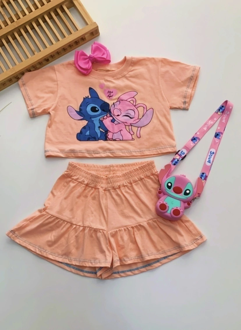 Descubra o encanto do Conjunto Stitch Malha que traz um short e uma blusa feitos em tecido de alta qualidade. Esta peça é perfeita para quem busca conforto e estilo em um só conjunto!